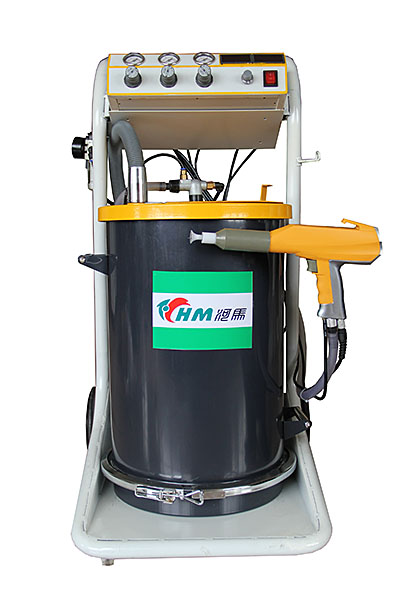 工件通過輸送鏈進(jìn)入噴粉房的噴槍位置準(zhǔn)備噴涂作業(yè)。靜電發(fā)生器通過噴槍槍口的電極針向工件方向的空間釋放高壓靜電(負(fù)極),該高壓靜電使從.噴槍口噴出的粉末和壓縮空氣的混合物以及電極周圍空氣電離(帶負(fù)電荷)。工件經(jīng)過掛具通過輸送鏈接地(接地極),這樣就在噴槍和工件之間形成一個電場粉末在電場力和壓縮空氣壓力的雙重推動下到達(dá)工件表面,依靠靜電吸引在工件表面形成一層均勻的涂層。