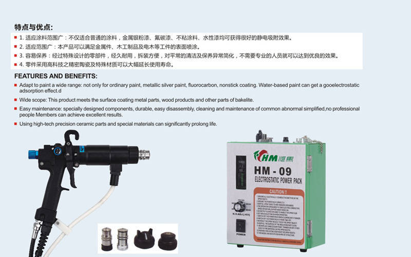 公司自成立以來,先后在廣州、東莞、江門、汕頭、陽江、河南、四川、湖北、湖南、上海、福建、浙江、山東、天津、廣西等地開設辦事處,為客戶提供優(yōu)質高效售后服務;同時,通過與省內(nèi)外科研院所聯(lián)合,開展項目合作和產(chǎn)品研發(fā),目前已擁有多項自主知識產(chǎn)權。其綜合實力雄厚,擁有1萬多平米現(xiàn)代化生產(chǎn)廠房和數(shù)套自動化生產(chǎn)設備,先后取得了國家電器CQC認證、ISO9001國際質量體系認證、國家高新技術企業(yè)及國家3A級信用企業(yè)等多項殊榮,是目前國內(nèi)靜電噴槍十大品牌之一,產(chǎn)品廣泛應用于五金、門業(yè)、自行車、電動車、球拍運動器材、燈飾配件、汽車及零部件、鋁型材、電機、建材、家具、機械、五大型掛車、公交車、液壓機械、電鍍保護等多個行業(yè)及領域。